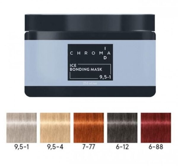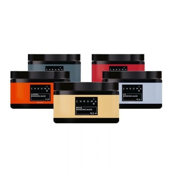 Maska Chroma ID është sistemi i parë i ngjyrave të 100% personalizuar i Schwarzkopf Professional për mbrojtjen intensive të flokëve me shtatë lidhje permanente. Formula unike ju lejon të merrni çdo nuancë, mundësitë janë të pafundme. Schwarzkopf Chroma ID perdoret për një rifreskim të ngjyrës në shtëpi mes vizitave në salon.